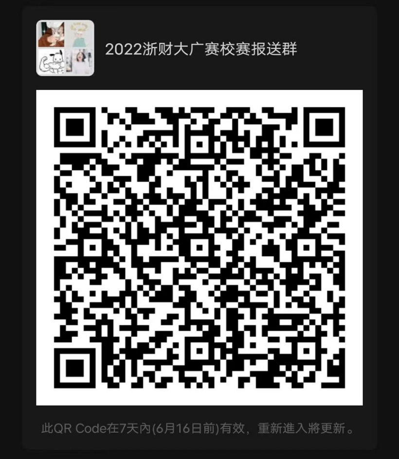 1.入围团队尽快加入“2022浙财大广赛校赛报送群”微信群,入围省赛团队仅主创人员扫码加群,不可重复加入。
