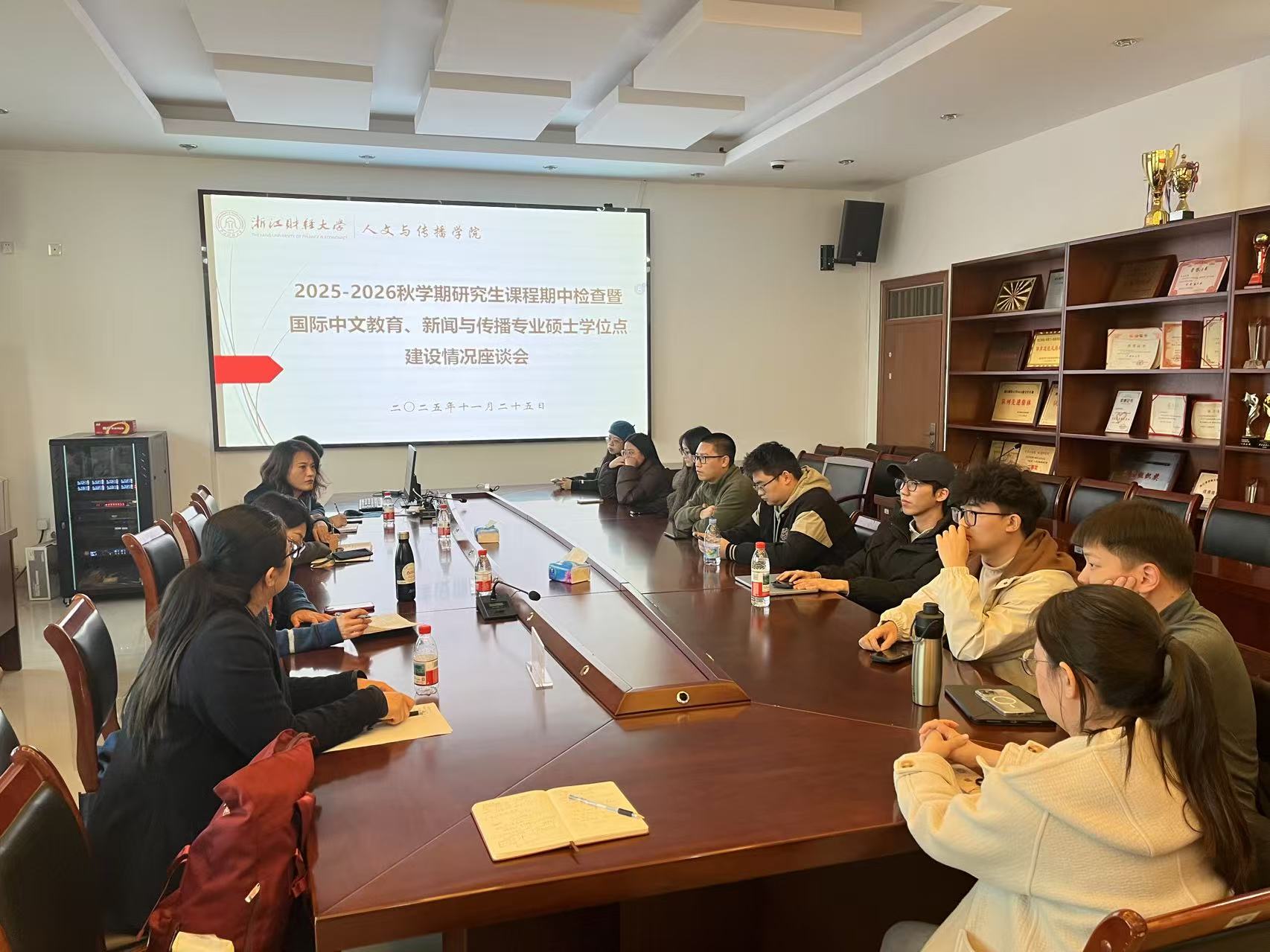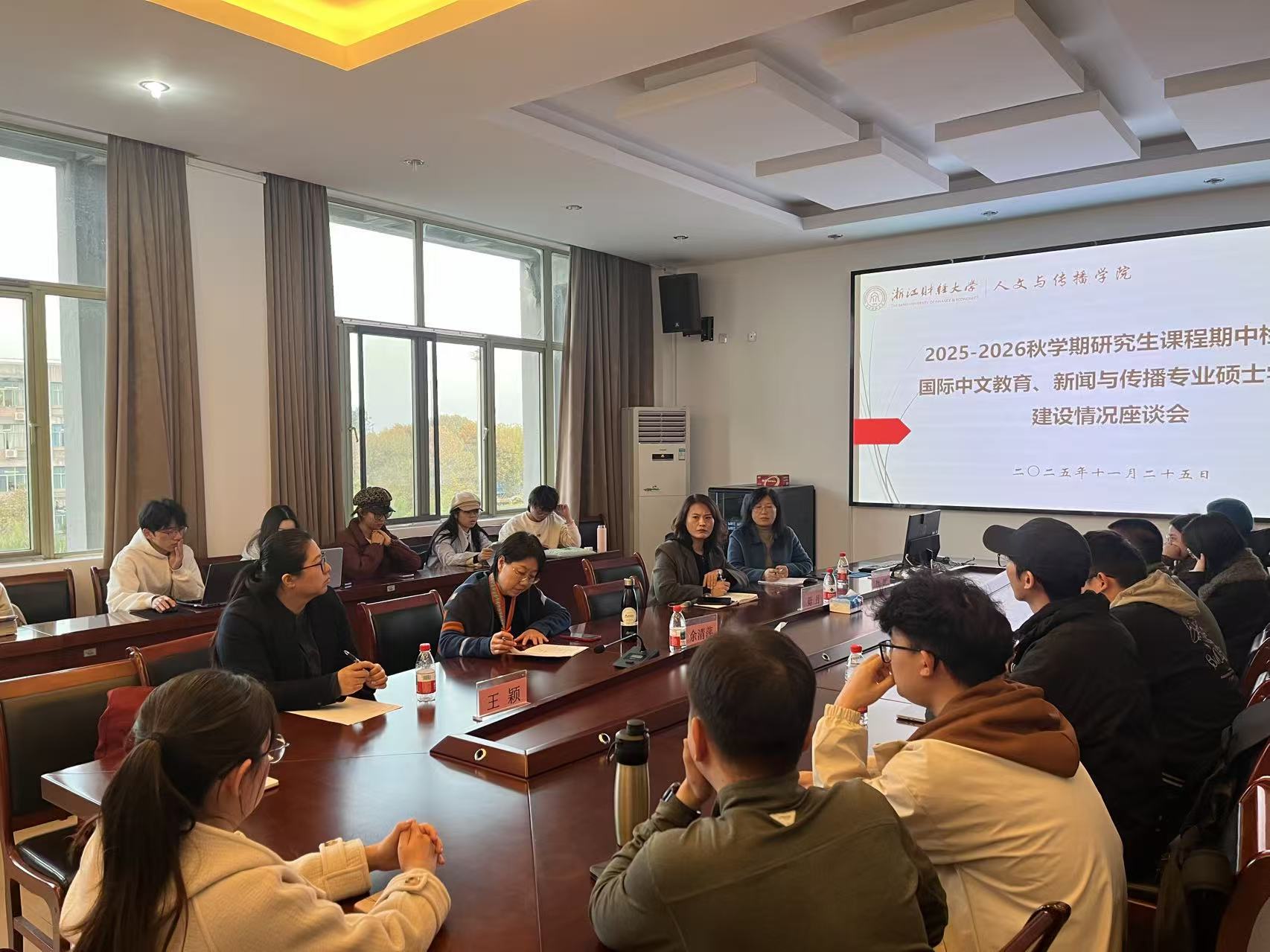 分管领导毋丹副院长参加并主持本次座谈会,国际中文教育负责人付伊副教授、新闻与传播专业硕导王颖副教授、研究生秘书以及成人韩漫