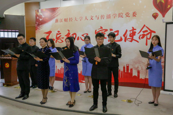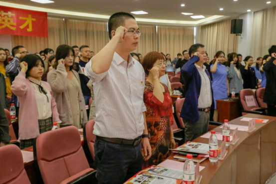 高燕书记带领全体师生党员重温入党誓词。誓词声声不忘初心,强化了作为共产党员的使命。