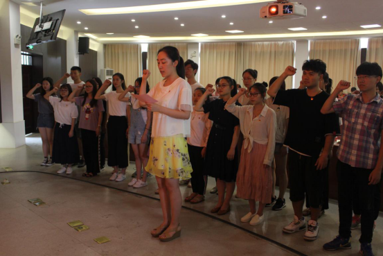 15文学陈媛媛同学代表新党员发言。她表示在鲜红的党旗下庄严宣誓,加入中国共产党,感到无比的光荣与自豪。自己要在今后的学习、生活中严格要求自己,不断提高党性修养,努力提高综合素质,以实际行动履行共产党员的职责和义务,发挥好党员的模范带头作用。